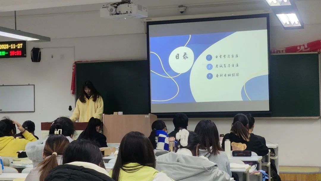 为帮助2022级同学充分了解考试复习方向,提高学习效率,有效备战期末考试,澳门pg官方电子平台于2023年11月27日在C108自习室举行学习经验分享交流会,22级全体同学、21级单科成绩突出的同学及学习部全体成员参加了此次会议。