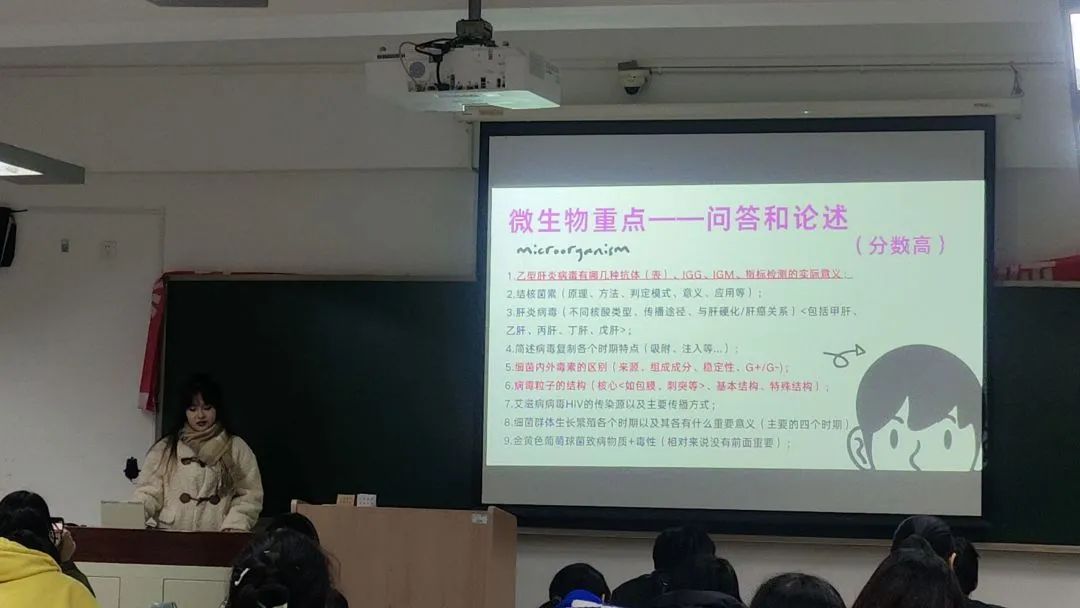 本次学习经验分享交流会由学习部主持。首先,各位2021级优胜学生代表分别结合自身的复习规划与学习安排,讲解了日常学习方法、高效复习方法以及学习资源的利用等;其次,对考试的题型进行了细致的讲解与分析,针对不同科目的知识点进行了简单梳理;最后,学姐们向22级同学分享了往年复习资料,为同学们答疑解惑,同时也祝贺大家期末高过。在愉快的氛围中,本次学习经验分享交流会圆满结束。