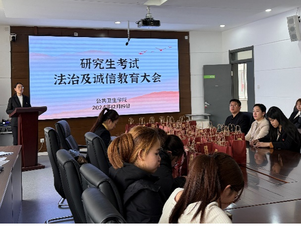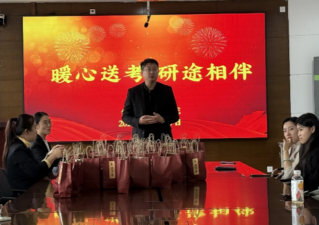 2025年全国硕士研究生招生考试在即,在备考的最后冲刺阶段,为帮助考研学子们舒缓备考压力,增强迎考信心,加强诚信教育,以饱满的精神状态迎接考试,澳门pg官方电子平台于12月19日下午在学院楼424会议室举办“暖心送考,研途相伴”考研慰问活动暨研究生考试法治及诚信教育大会,为考研学子送上最真挚的祝福与支持,助力他们踏上梦想的征程。澳门pg官方电子平台班子成员、两位辅导员老师及全体考研学生参加了本次活动。