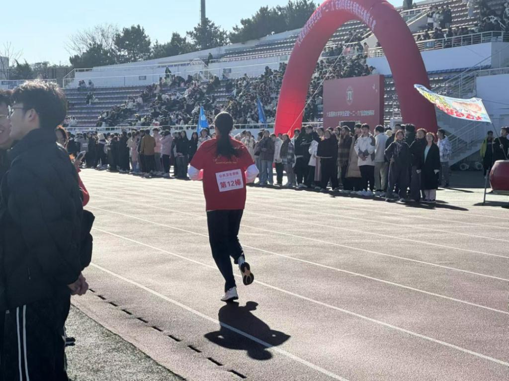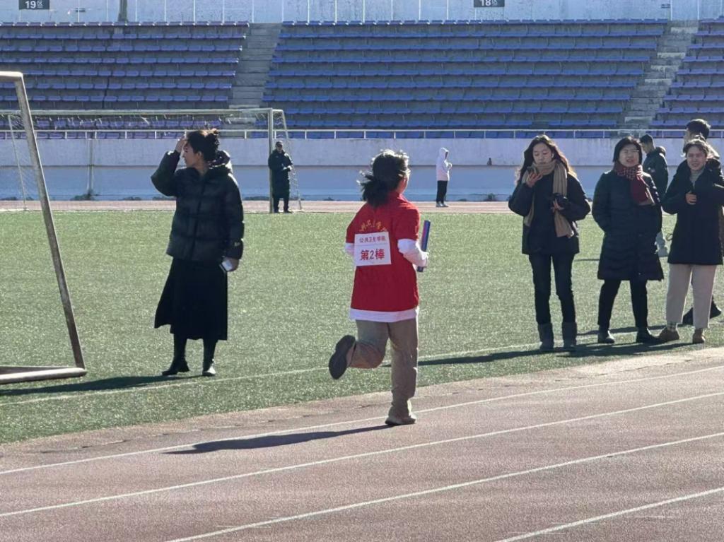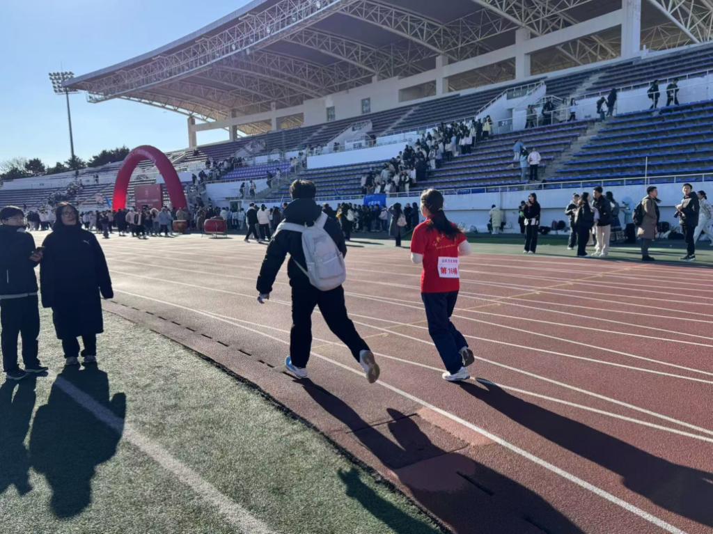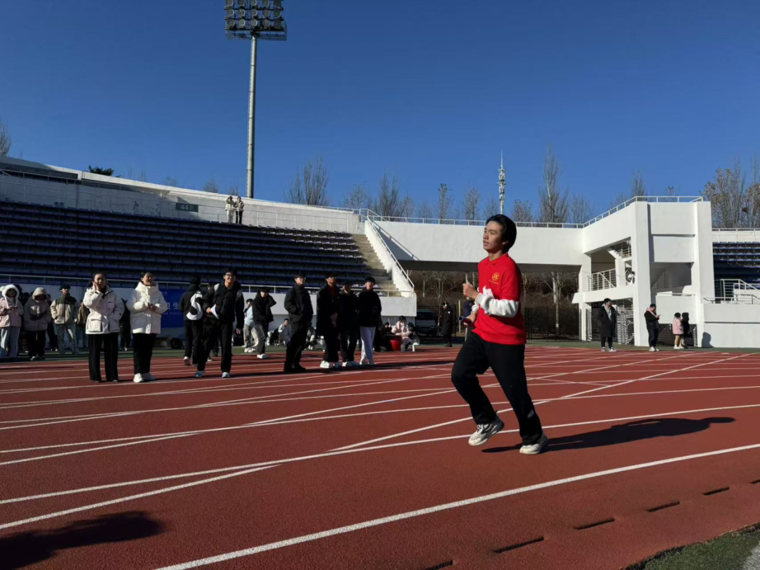 每位同学在跑步途中,赛道旁都会传来加油、鼓励的声音,这声音激动人心,阻挡了冬日的严寒,温暖了选手的心灵。