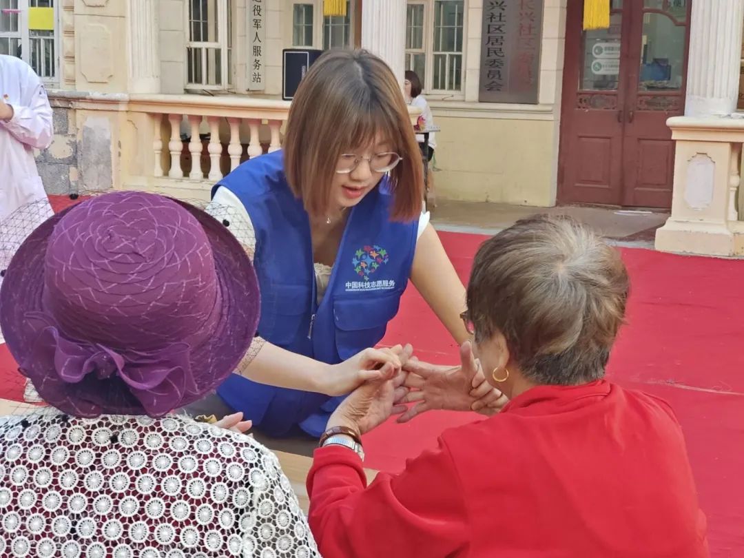 为了提高居民们的积极性,同学们准备了轻松有趣的手指操和健康知识有奖问答节目。在手指操的教学过程中,居民们表现出了极高的兴趣。健康知识问答环节的内容涉及生活的方方面面,比如生活中的健康常识、海姆立克急救法等,在轻松愉快的氛围中完成了知识的传递。
