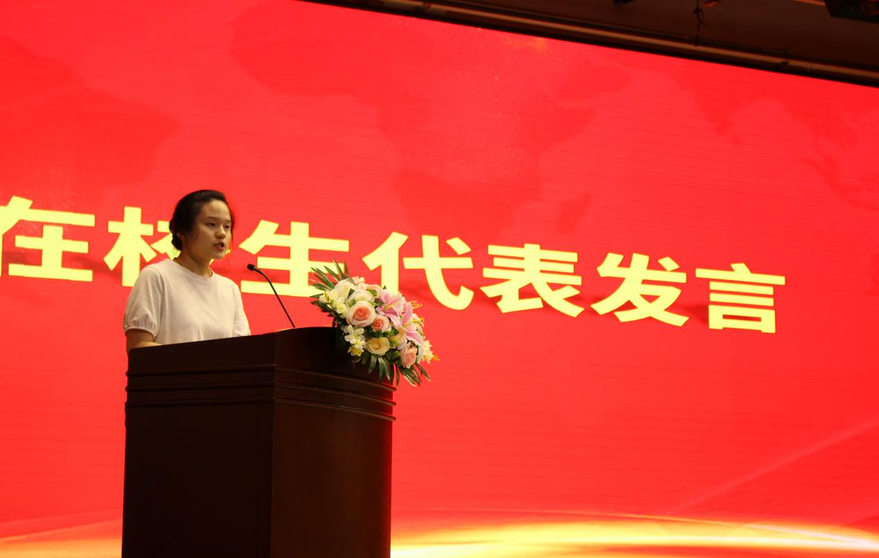 本科毕业生杨舒涵同学代表全体本科毕业生上台发言,她分享了自己五年来的所得与感悟,表达了对学弟学妹的期待与祝福,希望以后的学弟学妹们可以在今后的学业上熠熠生辉。