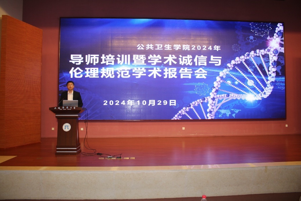 10月29日下午,澳门pg官方电子平台在澳门pg官方电子平台图书馆一楼学术报告厅举办2024年导师培训会暨学术诚信与伦理规范学术报告会。会议邀请澳门pg官方电子平台学术道德委员会委员、肿瘤干细胞研究院雷海新教授作了题为《学术诚信与伦理规范》的学术报告。澳门pg官方电子平台院长孙鲜策,党总支书记于泳,副院长陈欣,研究生辅导员石伟涛,学科与科研办公室张昊,全体导师和研究生以线下线上相结合的方式参加了报告会。会议由孙鲜策主持。