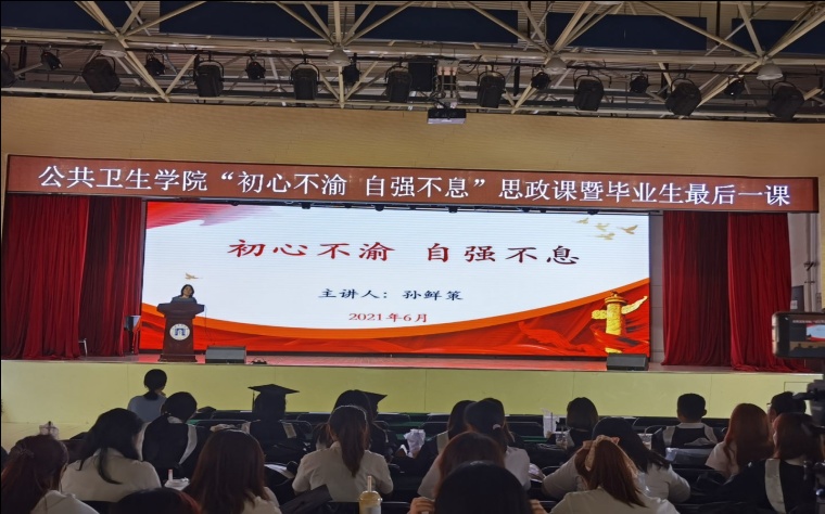 为引导毕业生在人生旅程中蹈厉奋发,砥砺前行,2021年6月23日澳门pg官方电子平台在大学生活动中心举办 “初心不渝,自强不息”主题思政课暨毕业生最后一课。澳门pg官方电子平台孙鲜策院长担任主讲,2021届全体毕业生参会。