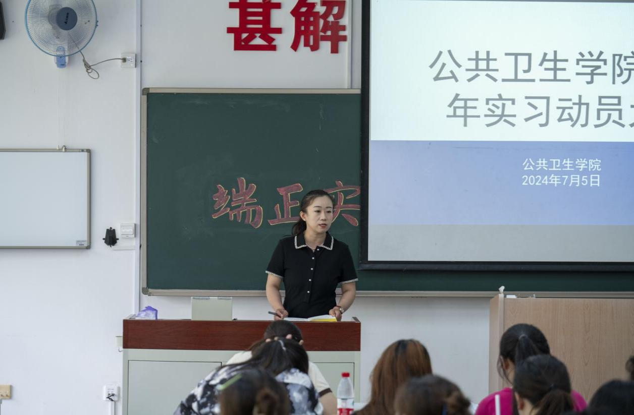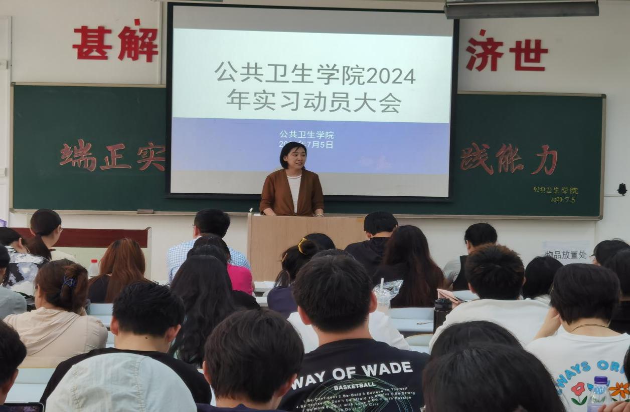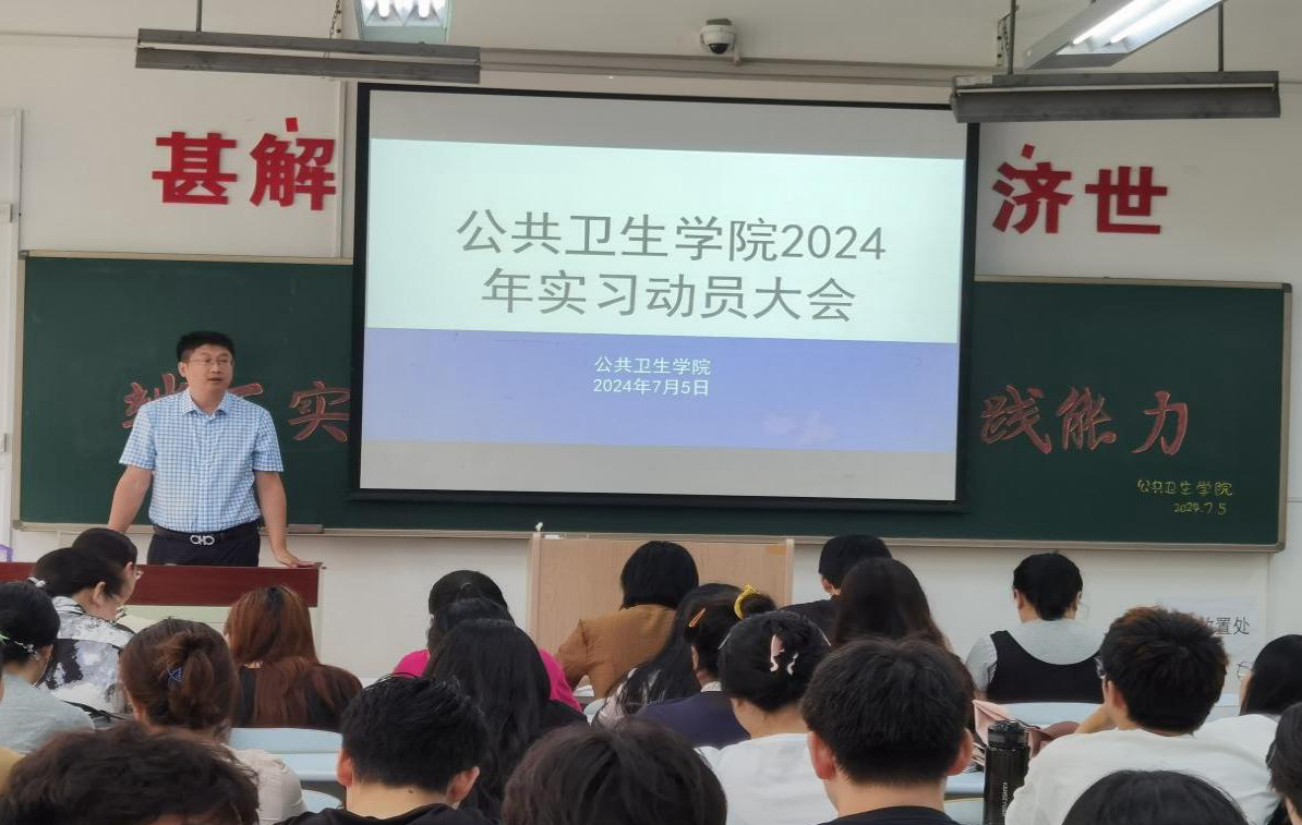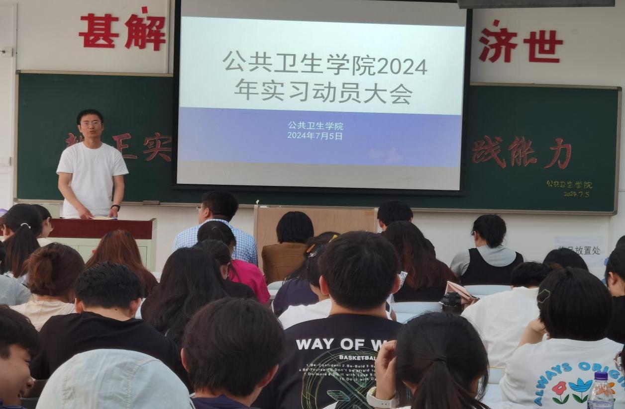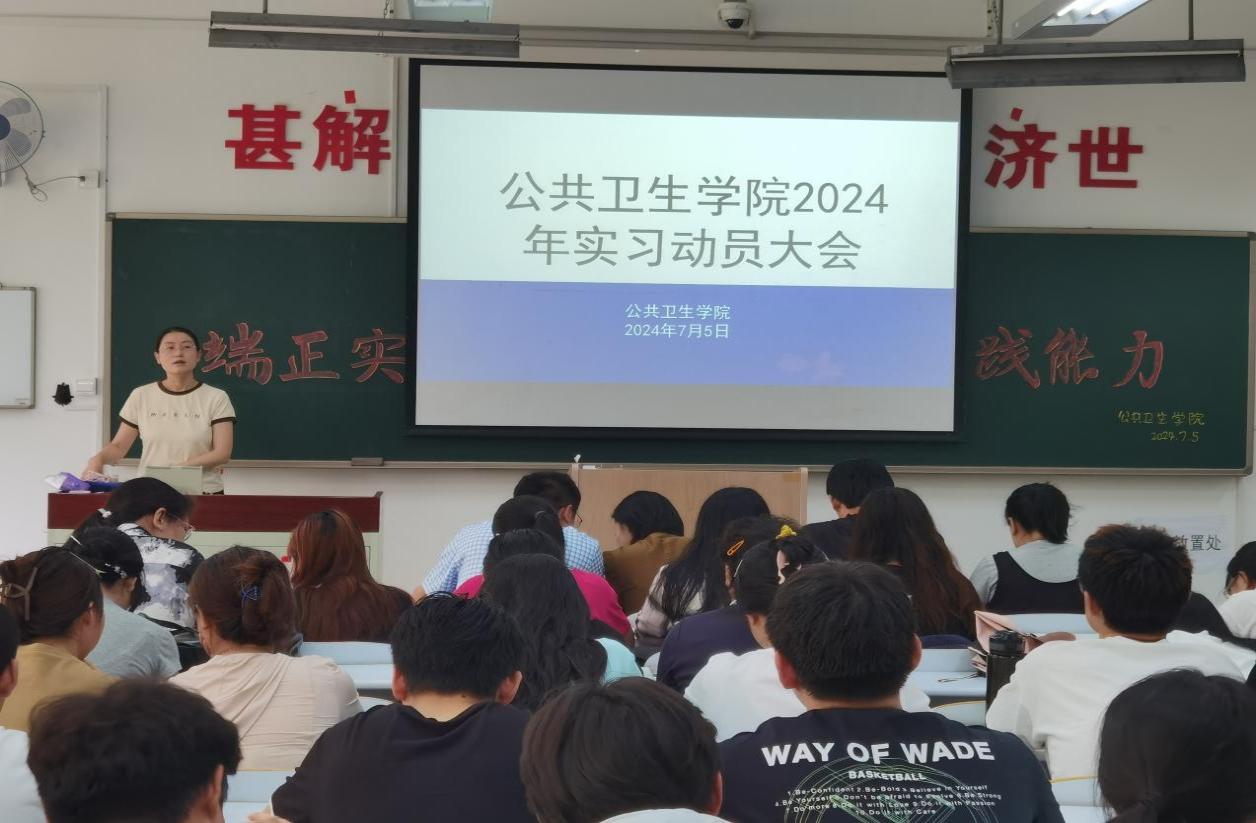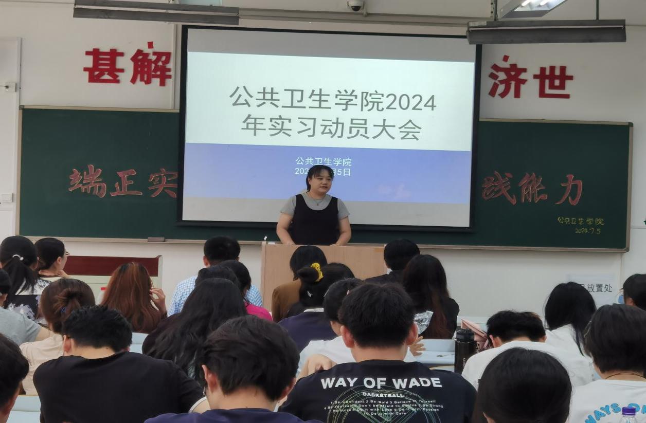 为确保学院学生实习工作的顺利开展,帮助学生尽快熟悉实习安排,以良好精神面貌投入实习,澳门pg官方电子平台于7月5日在D110教室召开了2024年实习动员大会。学院党总支书记于泳、副院长陈欣、白洁老师、王洪伟老师、李景山老师、两位辅导员老师以及20、21级预防医学专业全体学生参加了此次大会。