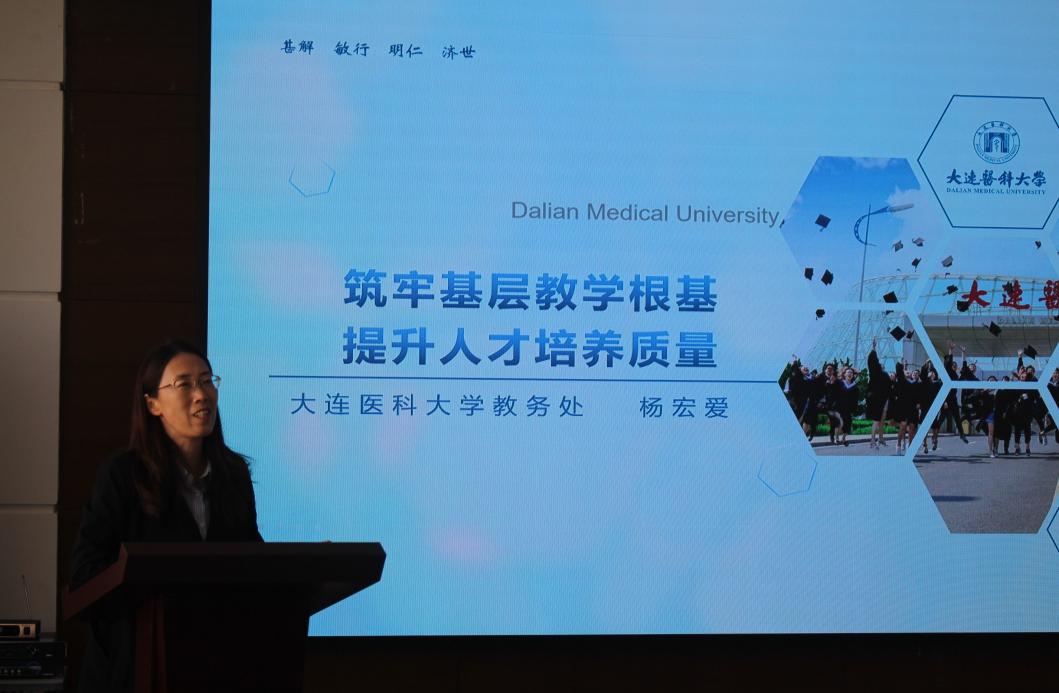 杨宏爱以其丰富的管理经验和深入的教学研究,为在场教师们带来了题为《筑牢基层教学根基,提升人才培养质量》的报告。她从课程教学任务、授课教案撰写、本科毕业论文指导、课程评价完善、实验室建设、质量评估和档案建设等方面向大家进行了细致地讲解。