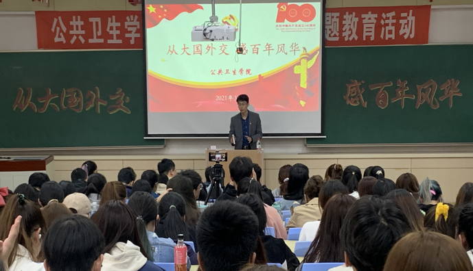 为庆祝中国共产党成立100周年,回顾党的光辉历程和伟大成就,教育引领青年学子坚定“四个自信”,从党史学习中汲取力量,爱国力行,澳门pg官方电子平台于3月31日下午在A403教室举办了“从大国外交,感百年风华”主题党课活动,通过新中国峥嵘笃定的大国外交发展史,感受中国共产党百年峥嵘尽展芳华。此次党课由辅导员徐文彬主讲,学院2018级、2019级及2020级全体同学参加了此次活动。